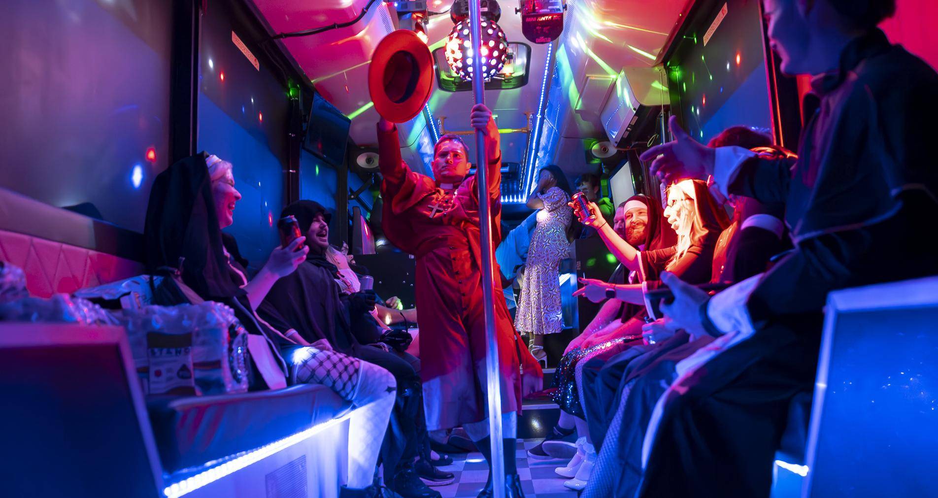 Our party bus is decked out in style to ensure you have the time of your life. With comfy leather seats, a state-of-the-art sound system, LED lighting, a designated VIP driver for the duration of your charter, and even dance poles, you’ll really get the experience of a private nightclub on wheels. It’s BYO, so remember to stock up on your epic four-hour journey. Just remember no bottles.